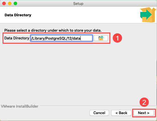 Fourth, specify a directory where PostgreSQL stores the data and click the Next button:
