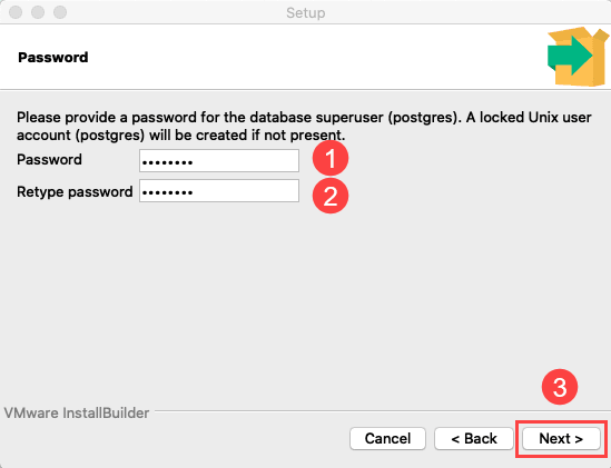 Second, enter the password for the postgres user.